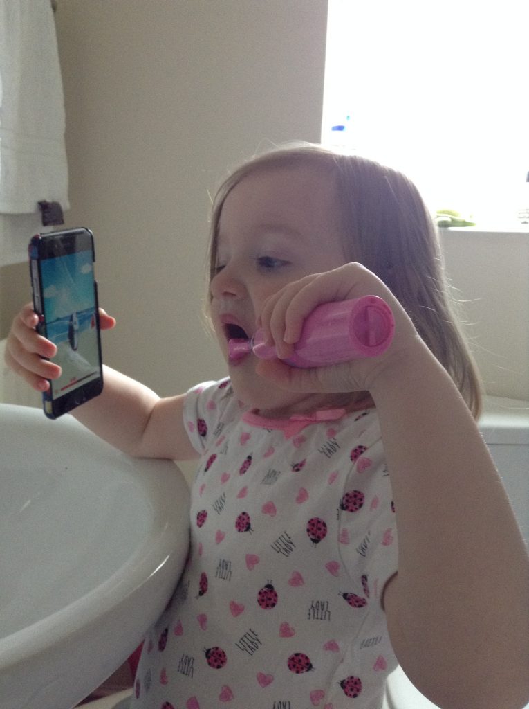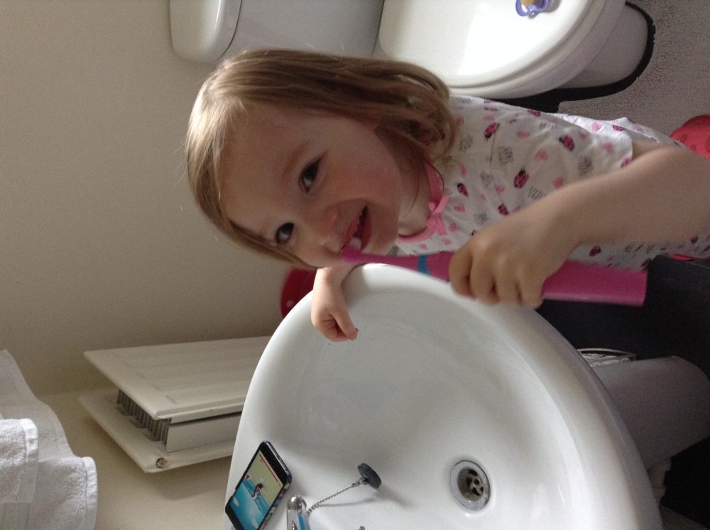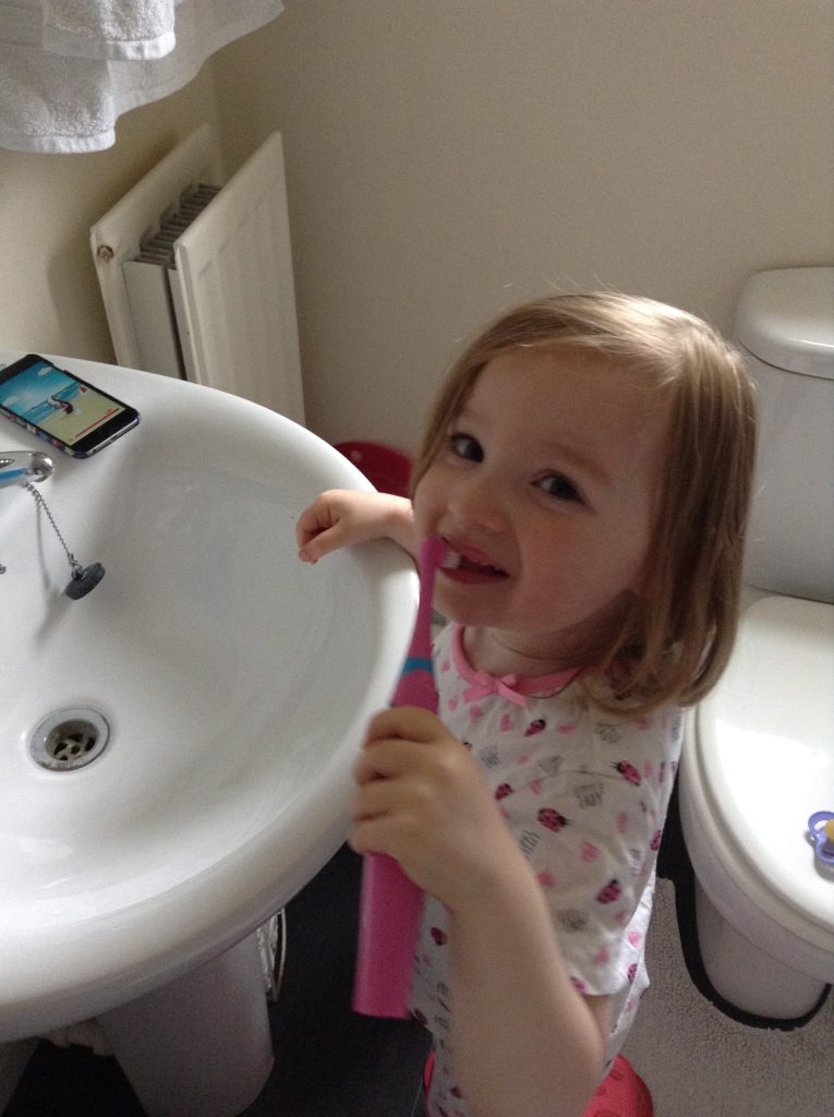 Getting children into a good tooth care routine is really important from an early age. Since Mia got her first tooth through and was able to stand on her step at the sink, we have tried to get her into the routine of cleaning her teeth every morning and evening. At first she was really interested in brushing her teeth and we had no issue whatsoever as long as we used fruit flavoured toothpaste! However after a few weeks the novelty wore off and since then it was a bit of a battle at bedtime to get her to do them properly (mornings aren’t an issue?!). We tried taking her to the shop to choose her own toothbrush and toothpaste and we even bought her a children’s electric toothbrush just like ‘mummy and daddy’s’ to see if we could get her interested in brushing her teeth again. The electric toothbrush worked for quite a few months but then once she hit 3 years old and decided she was going to be her own boss….the fights over brushing her teeth at bedtime started again!