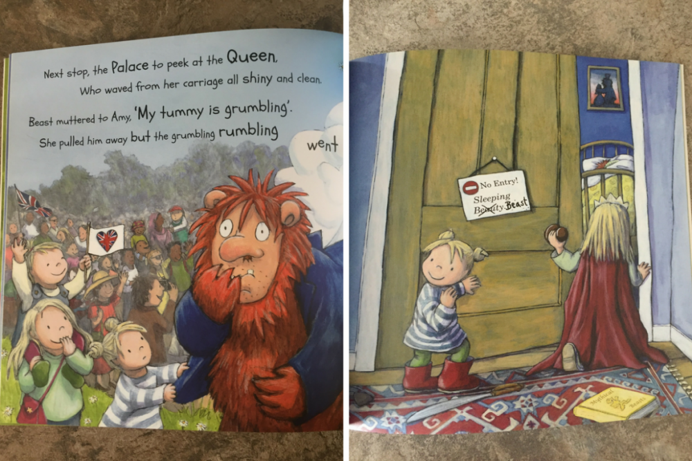 Molly, in her efforts to avoid being eaten by the big beast along with her little sisters, she quickly states that bored children just don’t taste good and that yummy children are happy ones! This forces the beast to postpone his plans as he decides to take the 3 children off for a day out in London to see the sights.