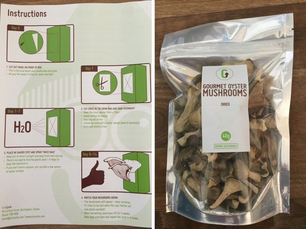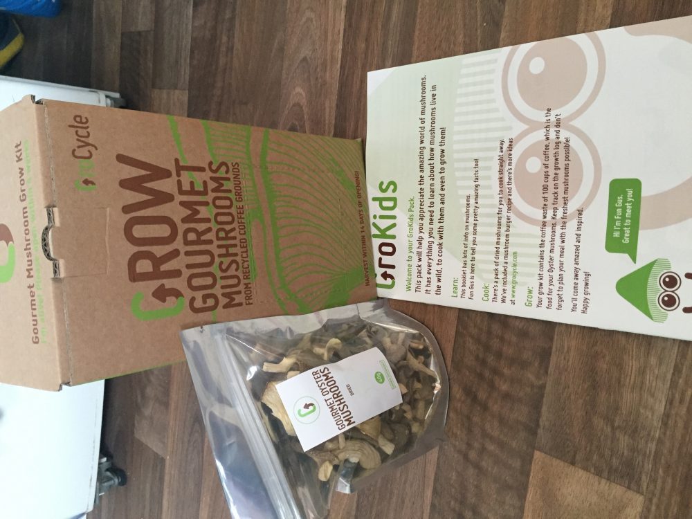 We are lucky enough to be a family that loves to cook! Not only do we try to home cook all our meals (even down to making our own pasta and sausages!) we also really enjoy growing our own fruit and vegetables and at the moment we are growing tomato’s and green beans. We really want Mia and Lottie to grow up knowing where their food comes from and they both have a big part to play in cooking in our house. Mia already knows which animals her meat comes from and although she doesn’t understand the process yet, she is in good standing to in the future. When we were approached to review GroCycles brand new GroKids Oyster Mushroom Kit, we were really excited to see if we could grow our very own mushrooms!