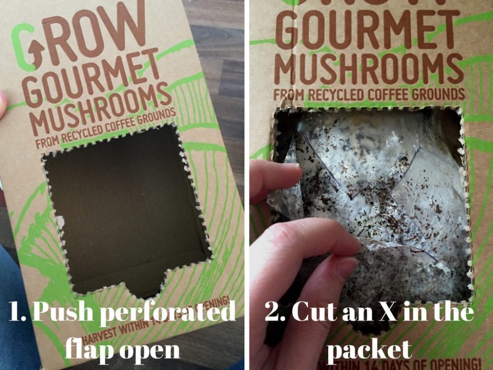 The mushroom kit is really simple to set up and I have created some videos, which you can find below, to show just how easy it is to set up, Mia did most of it which she absolutely loved! All you have to do is push out the perforated window in the box, cut an ‘X’ in the packet front, submerge the packet in water for 24 hrs and then water it twice a day.