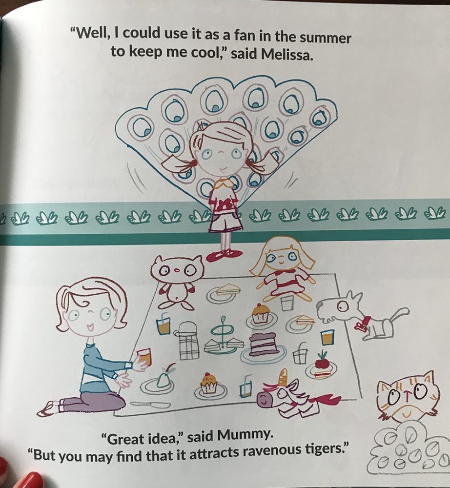 Mia really enjoyed this story and found it really funny! All the way through Mia was guessing what kind of tail Melissa would choose and Mia decided that she would like a fish’s tail so that she could swim really fast! The illustrations are again cartoony which means that they are bright, colourful and fun, just like the story!
