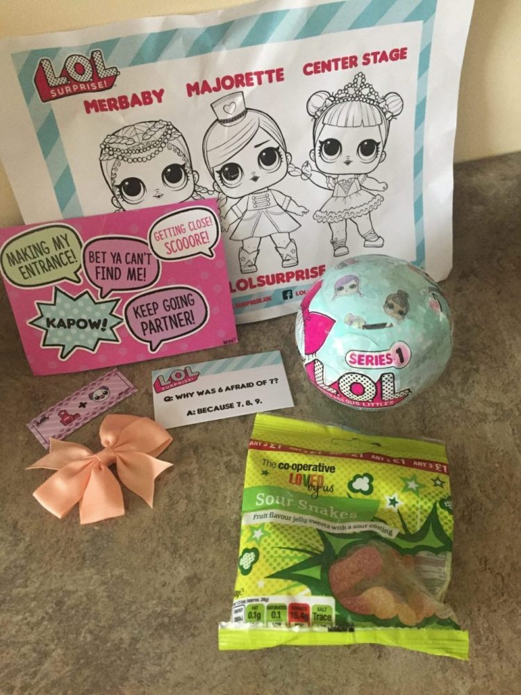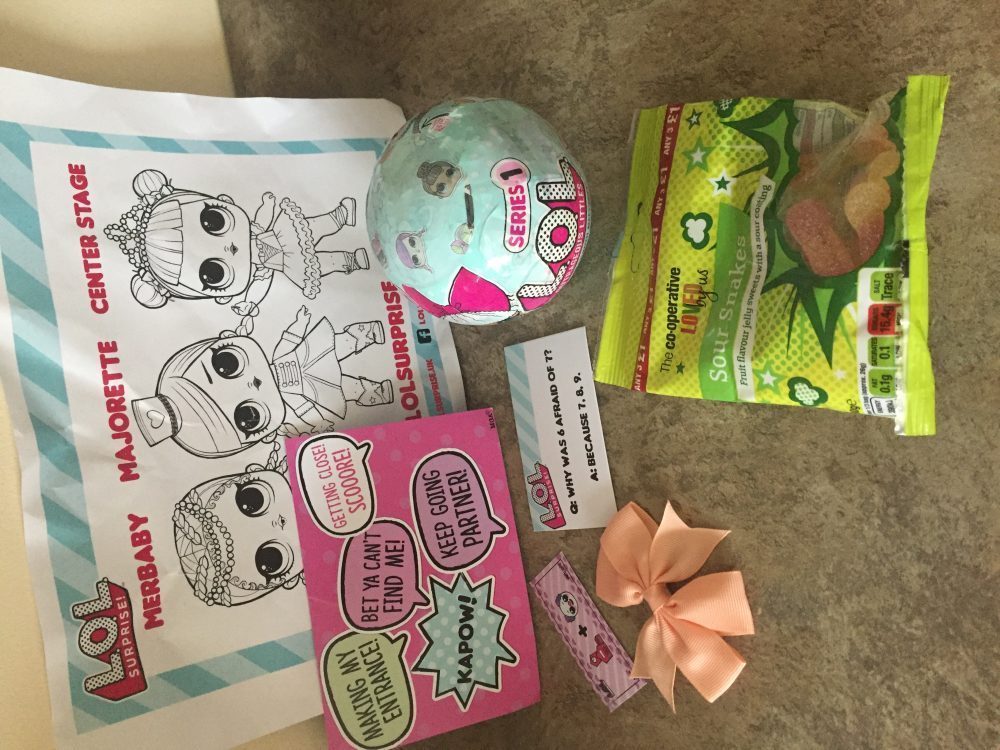 Mia was great and really enjoyed searching the house for her prizes! Included in the Easter Hunt prizes were; an L.O.L Surprise Diva Bow for Mia’s hair, a Secret Message, a Joke, a Colouring in sheet, a Postcard with lots of different quotes on it, a pack of Sour Snake Sweets, and the final prize for Mia to find was a series 1 L.O.L Surprise Ball to unbox which caused a lot of excitement! The L.O.L Surprise Ball contains a Lil Outrageous Littles Doll with mix and match accessories.