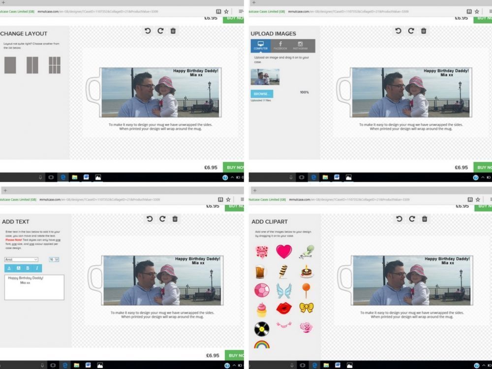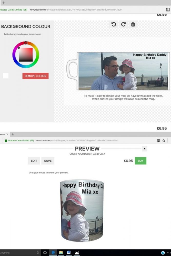 Mr Nutcase create personalised gifts for special occasions and use cutting edge photo print technology to do so. They currently offer; phone cases, MacBook cases, mugs, towels, and cushions so I decided I would design a mug for Mario, as I personalised one previously for him when Mia was a year old. Mr Nutcase offers a really simple design process and you can even upload images straight from your computer, Facebook, or Instagram account. There are 5 basic steps: