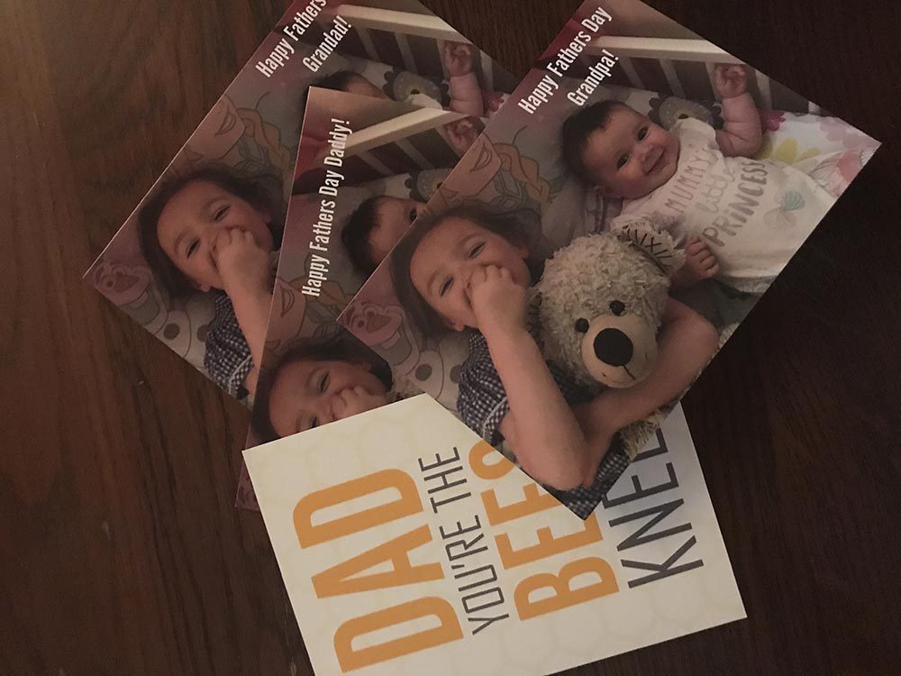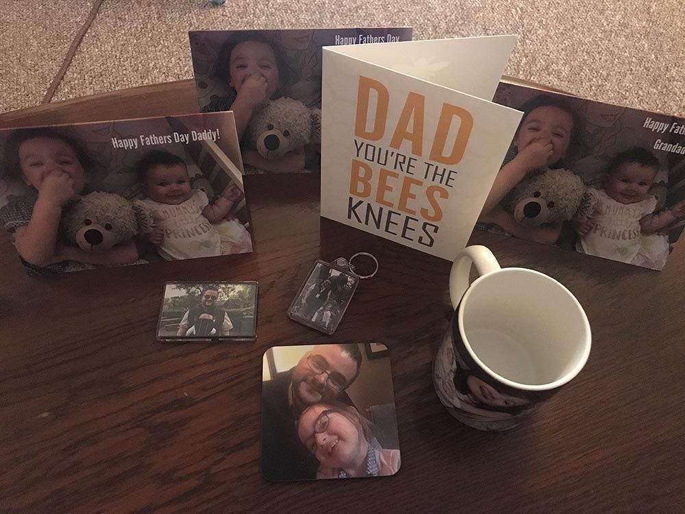 The first things I designed were Father’s Day cards. I need 1 for Mario from the girls, 1 for their Grandad, 1 for their Grandpa and then 1 from me to my own dad. I don’t know about you, but it starts getting complicated when you have grandparents and great-grandparents to remember too! I chose one of the most recent photos of the girls I could find and it’s a lovely pic of them both smiling as Lottie has just started smiling at us! It was really easy to design the cards as the templates are there for you and as you add and change things, you can see on the preview how it’s going to look before you order it. When the cards arrived in the post, I was really happy with the way they look and the quality of the cards themselves.