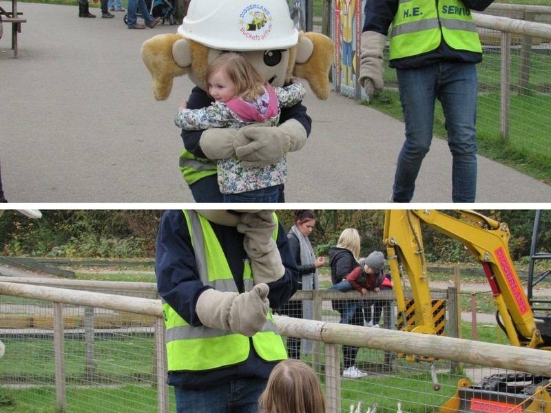 One of the best things about our visit was that Mia got to meet the Diggerland mascots Duggy and Dotty (she called them the ‘builders’ for some reason!). She gave them a massive hug and then they ended up following us to the Sky Shuttle ride so Mia was very, very happy to sit next to them on a ride! It really did make her day! The great thing about us going last week was that although it was half term as well as the last week they are open until February, it was so quiet that there was little to no queue for anything which is a major ‘thumbs up’ when you have an impatient 3yr old! I’m not sure what the wait times would be like on a normal day as if you’re looking to drive a JCB Robot or Landrover, you may have to wait a long time!